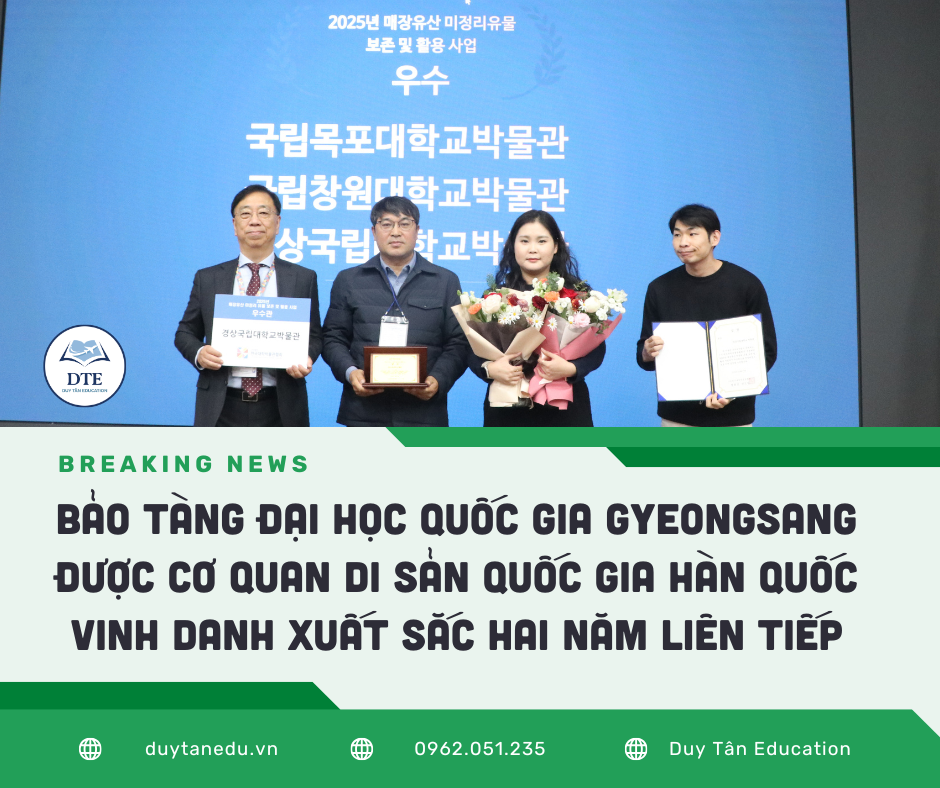 Đại học Quốc gia Gyeongsang (Gyeongsang National University – GNU) tiếp tục khẳng định vị thế là một đại học quốc gia trọng điểm của Hàn Quốc không chỉ trong đào tạo – nghiên cứu mà còn trong lĩnh vực bảo tồn di sản văn hóa, khi Bảo tàng Đại học Quốc gia Gyeongsang chính thức được Cơ quan Di sản Quốc gia Hàn Quốc đánh giá là đơn vị xuất sắc trong chương trình “Bảo tồn và khai thác hiện vật di sản chôn vùi chưa được phân loại” năm 2025.