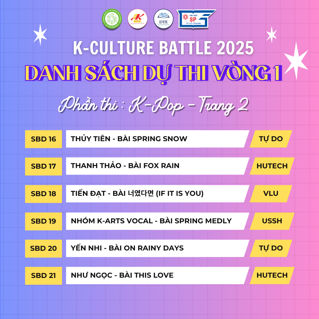 - ★ Thông báo kết quả vòng 2 ★ K-Culture Battle 2025 ★